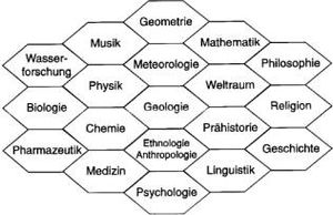 Während noch bis ins 19. Jahrhundert hinein in der 'Welt der Wissenschaft' zumeist das humanistische Bildungsideal des allseits kompetenten, auf unterschiedlichen Gebieten forschenden Universalgelehrten oder Polyhistors das akademische Selbstverständnis prägte - man sprach z.B. noch im Sinne Descartes´ von einem "Baum der Wissenschaft" (als Bild für die Gesamtheit des Wissens und der Wissenschaften in Form eines lebendigen Organismus) [1] -, begann nun eine Phase immer rigideren Spezialistentums mit einer kollektiven Neigung zum Fachzentrismus und einer Tendenz zur Neo-Scholastik. [2]