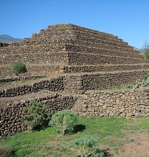Und mittlerweile wurden ähnlich aussehende Stufenpyramiden [1] auch auf Sardinien, Korsika, Sizilien und La Palma (und seit neuestem in Mauritius, das liegt aber im Indischen Ozean!) entdeckt, davon einige auf knapp 3000 v. Chr. datiert (ca. 300 Jahre früher als in Ägypten, 500 Jahre früher als in Sumer!). Eine ganz neue Kultur kommt hier zum Vorschein, eine mögliche Brücke zwischen den Hochkulturen der Alten und Neuen Welt, deren Bedeutung noch nicht im Entferntesten abzuschätzen ist.