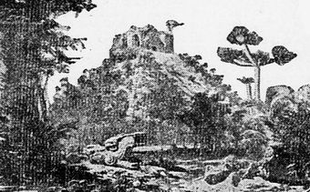 Ihr Ursprung wird einer praktisch verschollenen, Maya genannten Rasse zugeschrieben, die mit den Azteken aus Montezumas Reich verwandt waren, die alten Mexikaner jedoch, abgesehen von der Kriegstüchtigkeit, in Allem weit übertrafen. Die Ruinen ihrer Tempel bei Palenque (Abb. 2), Copán, Petén und anderswo erregen das Staunen des Reisenden, und bergen einige der schönsten und kunstvollsten Gravierungen, die überhaupt irgendwo zu finden sind.