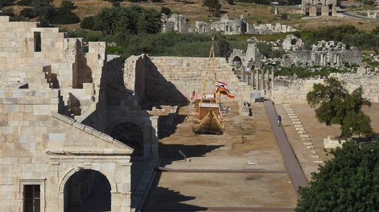 Abb. 1 Die ABORA IV ist nach dem gelungenen Transport in Patara angekommen und kann dort - nach einigen Rekonstruktions- und Konservierungs-Arbeiten ihre künftige Funktion als 'Museumsschiff der besonderen Art' aufnemen.