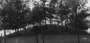 In der 'Centennial History of Rush County' von 1921 lesen wir: "Vor vierzig Jahren wurde ein solcher Mound auf der alten Gary Farm erforscht, und ebenfalls einer in der Gemeinde Posey, [...] in welchem zahlreiche Töpferei-Stücke, eine ansehnliche Menge Perlen einer abweichenden Sorte und das Skelett eines gigantischen Mannes ans Licht kamen." [6]