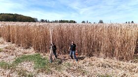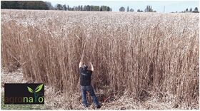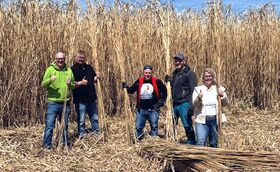 Agronaro's reed fields are located not far from Franzensbad. There, Heiko and Stefan worked in shifts to cut the reeds for defoliation. The Chinese reed is enormous, reaching over 2.5 meters in length.Für die Schilfernte rückte die ganze Geschäftsleitung an (v.l.n.r.): Michael Schaumberger (Vorstand), Roland Schaumberger (Vorstand), Dr. Dominique Görlitz (ABORA), Heiko Seyfert (ABORA) und Elke Gültner (Geschäftsführerin).//