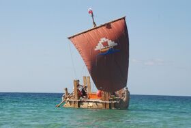 Here's another flashback to the construction of the DILMUN S in Gotha. In 2014, we covered the modern hull made of Styrofoam and wood with reed mats. Next came the laborious process of laying and tightening the spiral lashing, just like on a "real reed boat."Unsere DILMUN S hat sich schon einige Male auf Hochseetörns bewährt. Hier ein Bild von 2016 vor Sardinien. Aber auch Segeleinsätze auf der Nord- und Ostsee sowie auf unserem Heimatsee im Geiseltal bei Merseburg dienten als Übungsgewässer, um unseren Vereinsmitgliedern die Fertigkeiten zur Seitenschwert-Segeltechnik beizubringen. Dieses Jahr geht es nach dem Schlossteich-Event in Chemnitz wieder auf den Geiseltalsee und im Oktober sogar wieder zurück nach Sardinien aufs Mittelmeer!//
