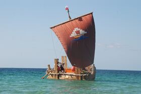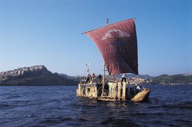 Abbiamo intrapreso la nostra prima grande spedizione verso l'ignoto più di 26 anni fa con ABORA I. Da Alghero, il gommone ha navigato via Porto Torres e Castelsardo fino a Santa Teresa di Gallura, prima di raggiungere la vicina Corsica. Sebbene ABORA I non fosse ancora completamente armato, le derive ci permettevano di navigare fino a 90° di traverso al vento. Senza questa capacità, ABORA I non sarebbe stato in grado di completare la rotta di navigazione di 650 km fino a Piombino, a est dell'Elba!Sardinien ist ein unentdeckter Kontinent der Archäologie innerhalb Europas. Neben Stufenpyramiden mesopotamischer Bauart und tausenden megalithischen Türmen (Nuraghen) ist es der letzte Ort in Europa, auf dem heute noch Schilfboote gebaut und sogar benutzt werden. Dieses Bild stammt aus Cabras, wo jedes Jahr am 15. August eine Schilfbootregatta stattfindet. //