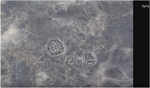 Bild der Geoglyphen der schwarzen Wüste Jordaniens. (Abb. 2)