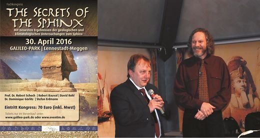 Anlässlich der Sonderausstellung „Das Eisen der Pharaonen“ fand im Galileo-Park, Lennestadt, am 30. April 2016 der internationale Kongress „The Secrets of the Sphinx“ statt. Namhafte Wissenschaftler und Forscher aus dem In- und Ausland hielten Vorträge über das mögliche Alter des Sphinx sowie über die mögliche Existenz vorgeschichtlicher, bisher unbekannter Hochkulturen auf der Welt.