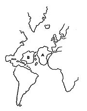 56 KB | RMH | Donnellys zentralatlantisches Atlantis auf dem Delphin-Rücken und (weiß markiert) der von ihm angenommene Diffusionsraum der atlantischen Hochkultur. | 1 |