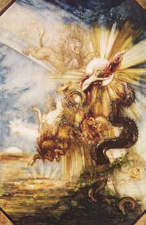 Spanuths Hypothese geht jedoch weit über "starke Meteorschauer", wie wir sie kennen, hinaus: "Man kann sich nach diesen Beobachtungen leicht vorstellen, daß es katastrophenartige Auswirkungen für das Klima der Erde haben muß, wenn große Mengen zerriebener Meteorteilchen und Aschemengen größten Ausmaßes gleichzeitig in die Atmosphäre gelangen. Das aber war gegen Ende des 13. Jahrhunderts v. Chr. der Fall. Der Komet, den die Griechen Phaéthon (Abb. 5), andere Völker Sekhmet, Typhon, Anat, Tistrya [in der Awesta; bb] usw. nannten, kam auf einer sonnennahen Bahn der Erde nahe, ungeheure Mengen von zerriebenem Meteorstaub vermischten sich mit den vulkanischen Aschen, die durch den Ausbruch zahlreicher Vulkane in die Atmosphäre geschleudert worden waren." [12]