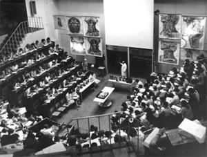 [[Bild:Hörsaal 2.jpg|thumb|'''Abb. 1''' Schulwissenschaft als institutionalisierte Form von Wissenschaft ist eine ausschließlich 'universitäre Veranstaltung'. (Bild: Vorlesung im Hörsaal der Karl-Marx-Universität Leipzig im Jahr 1981, heute: Universität Leipzig)]] | [[Bild:Hörsaal 2.jpg|thumb|'''Abb. 1''' Schulwissenschaft als institutionalisierte Form von Wissenschaft ist eine ausschließlich 'universitäre Veranstaltung'. (Bild: Vorlesung im Hörsaal der Karl-Marx-Universität Leipzig im Jahr 1981, heute: Universität Leipzig)]] | ||
