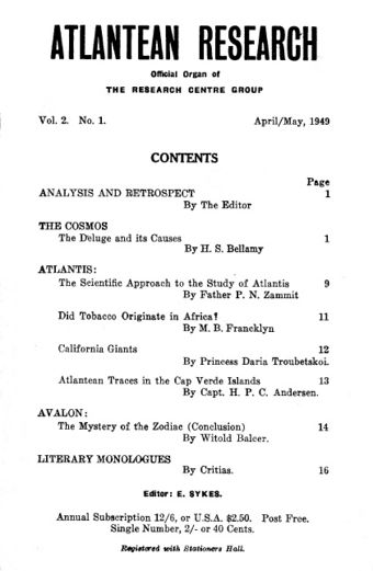 Dieser Artikel von Daria Troubetskoi erchien erstmals mit dem englischsprachigen Original-Titel "Californian Giants" bei: Egerton Sykes (Hrsg.) "ATLANTEAN RESEARCH - Official Organ of THE RESEARCH CENTRE GROUP, Vol. 2 No. 1 April / May 1949, S. 12-13 (online als PDF-Datei) (Abb. 1)