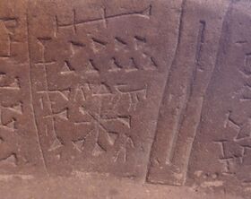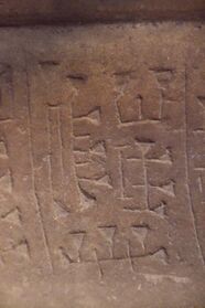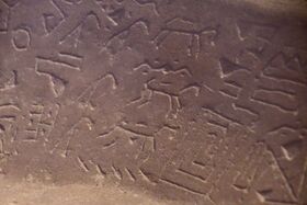 To the right of these kuneiformed letters are rune-like signs, which also appear here completely without context. In addition to the bowl, a human sculpture was also found that has the same symbols on its thighs.