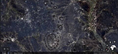Nachdem ich mehr als 28 Jahre Forschungen mit den alten Schriften und der megalithischen Archäologie gesammelt habe und als ich diese Bilder gesehen habe, würde es mir schnell bewusst, was diese Basaltkreise sind und welchen Zweck sie haben. Auf dem nachfolgenden Bild zeige ich Ihnen die vorgenannten Kreise sowie die These die meine Schlussfolgerung erläutert.