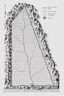 Die fruchtbare Ebene lag auf der Südseite eines Gebirges, das sie fast umschloß. In den hohen Bergen lebten zahlreiche wilde Tiere in großen Wäldern, Seen und Flüssen. Die Atlantis-Ebene selbst maß 2000 x 3000 Stadien (320470 km) war fast quadratisch. "Wo es aber noch an der vollen Regelmäßigkeit ... fehlte, war ihr diese dadurch gegeben worden, daß sie auf allen Seiten einen Graben herumgezogen hatten." Dieser Graben war ein Stadion (180 m) breit und ein Plethron (30 m) tief. Die Ebene wurde von einem engmaschigen Gitternetz von 30 m breiten Kanälen durchzogen, über die Bauholz und andere Rohstoffe in die Stadt gebracht wurden.