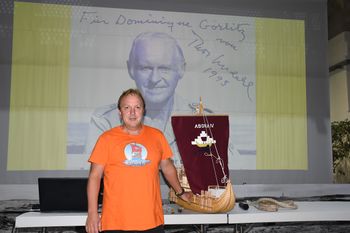 In der Pfännerhall Braunsbedra, in der auch die ABORA-Dauerausstellung „Kam Kolumbus 15.000 Jahre zu spät?“ untergrbracht ist, boten die Mitarbeiter den Gästen ein tolles Ambiente. Skipper und Expeditionsleiter Dominique Görlitz hielt seinen ersten offiziellen Vortrag über die Durchführung und Ergebnisse der ABORA IV-Expedition. Besonderen Raum nahmen seine Erläuterungen über die Befahrung der Bucht vor den Ruinen der frühbronzezeitlichen Hafen- und Handelsstadt Poliochni auf Limnos sowie die Durchfahrung der Caldera von Santorin ein.