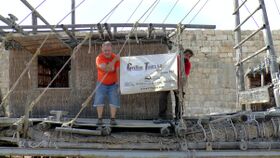 With the help of Prof. Havva İşkan's employees, the ABORA team was able to brace the entire rigging of the mast again. The work was very strenuous under the midday sun, but it worked. The rigging is still intact after four years.Auch die Korbhütten machen noch einen sehr guten Eindruck. Immer inneren befand sich noch das Sponsorenlogo unseres langjährigen Partners CRILLON TOURS S.A. aus Bolivien. Sie und die dort tätigen Aymara-Indianer der Familie Limachi unterstützen uns seit 2000 im Bau von unseren Expeditionsschiffen. //