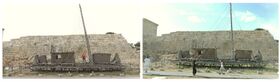 The before and after picture after the rigging was tensioned. On the left the weak condition of the rigging. Right after bracing and aligning the mast. This means the exhibition ship makes a more optimistic impression, right?Getreu unserem Motto >>Erfolge sind immer Teamwork<< erfreuen sich unser deutsches und türkisches Team der gemeinsamen Zusammenarbeit. Mit Zeichensprache und Google Translator meisterten wir die Rekonstruktion der Takelage in situ am Objekt. Nächste Woche geht es dann mit Prof. Havva noch einmal ans Werk, um den Rumpf zu inspizieren. //