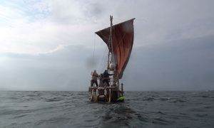 The next experiments were carried out with Sebastian's makeshift sail. Although it was smaller and less well profiled in area, the unfolded sail liekes showed better upwind sailing ability than the folded square sail. The experiments were extended to two days. On the second day the wind was even stronger than on the capsizing day before. At some point the pressure on the main sheet of the temporary structure was so strong that it simply tore out of the eyelets and danced around like a wild dragon high in the mast. Up to this point we were able to gain good experience in the usability and learn that with a little experience it can be operated safely even in stronger winds. These experiences justify our decision to continue our experiments in 2022 with a properly made triangular sail. Our goal is to continue researching this type of sail for a future ABORA V mission.