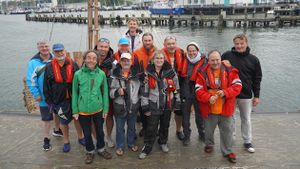 Aussteller- und Segelteam verabschieden sich von Sassnitz. Drei Monate gewährte uns Sassnitz Aufenthalt, Sonderausstellung und die Möglichkeit, auf der Ostsee zu experimentieren. * The exhibitor and sailing team say goodbye to Sassnitz. Sassnitz granted us a three-month stay, a special exhibition and the opportunity to experiment on the Baltic Sea.