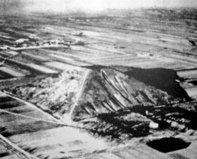 Die ersten Berichte über eine gewaltige Pyramide (Abb. 3) in China, die in der westlichen Welt bekannt wurden, stammen offenbar von James Gaussman, einem Piloten der U.S. Air Force, der im Frühjahr 1945 bei einem Aufklärungsflug über dem Qin-Ling-Shan-Gebirge, südwestlich von Xian, ein "phantastisches Bauwerk" entdeckte, "das in seinen Militärkarten nicht eingezeichnet war: Eine gigantische Pyramide - und das mitten in China! Ihm wird sofort klar, dass ihm dies mit Sicherheit niemand glauben würde und so macht er aus der Flugzeugkabine heraus ein Foto. Als es nach seiner Rückkehr zum Stützpunkt entwickelt wird, setzt es einen gewaltigen Schock." [2]