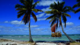 This is how one could imagine the landing of ancient seafarers on the coast of Cuba. The north-east trade wind would have almost completely supported such a journey from the Canary Islands to the Caribbean.Schon Thor Heyerdahl und seine Frau Jacqueline Beer wurden von Fidel Castro 1993 in jene sagenumwobenen Dörfer irgendwo im Süden von Kuba geführt, wo er ihnen stolz die vermeintlichen Relikte einer vergessenen kanarischen Kultur vorstellte. //
