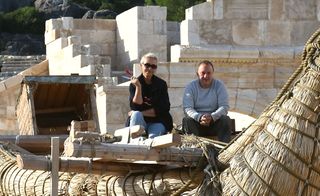 Aus diesem Grund war es so wichtig, den türkischen Kollegen zu helfen, den Rumpf von ABORA IV wieder komplett zu verschnüren, um alles für die noch ausstehende Konservierung vorzubereiten. Die Untersuchungen am Rumpf ergaben, dass das Schilf im Moment noch in einem ausgezeichneten Zustand ist. Es zeigt noch immer keinerlei Anzeichen von Fäulnis. Nach dem Verschnüren setzten wir mit Hilfe der Archäologen die Großaufbauten wieder auf den Rumpf.