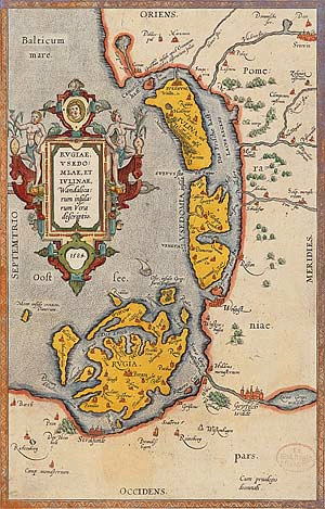 Die Stadt ist angefüllt mit Waren aller Völker des Nordens, nichts Begehrenswertes oder Seltenes fehlt... Hier zeigt sich Neptun in dreifacher Gestalt, denn die Insel wird von drei Meeren bespült, eins davon soll von tiefgrünem Aussehen sein, das zweite weißlich; das dritte wogt ununterbrochen wildbewegt von Stürmen. Von dieser Stadt setzt man in kurzer Ruderfahrt nach der Stadt Demmin in der Peenemündung über, wo die Ranen wohnen..." Weiter heißt es bei Adam, dass die Ranen außerdem auf Rügen siedeln, das "der Stadt Jumne benachbart" ist und wo Jumne läge, scheidet die Oder die Pommern von den Wilzen.
