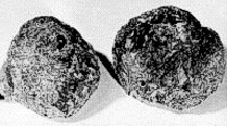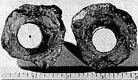 Als Mikesell den Stein jeoch aufsägte, machte er eine gänzlich unerwartete Entdeckung: "Unter dem äußeren Belag - er bestand aus gehärtetem Ton und Kies mit fossilen Einschlüssen - stieß Mikesell auf eine hexagonale Schicht aus einer unbekannten Substanz, die weicher als Achat oder Jaspis sein mußte. Darin eingebettet befand sich ein von Kupferringen umschlossener Zylinder von rund 20 Millimeter Durchmesser. In der Mitte des Zylinders steckte ein zwei Millimeter dicker Metallstab." [1]
