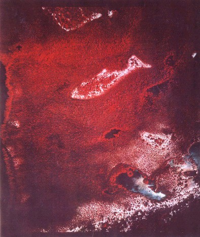 Der sogenannte, "Fish-Mound" ist nur eine von vielen Strukturen, die eine verblüffende Ähnlichkeit mit Tierbildern aufweisen. Schräg rechts darunter befindet sich der "Triangular Mound", eine regelmäßige, dreieckige Bodenformation. (Infrarot-Foto: Raymond Leigh Sr., Archiv W. Donato)