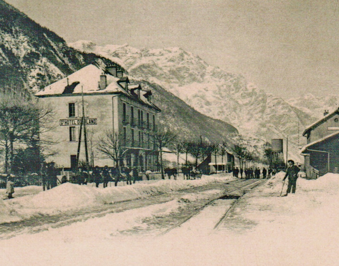 Datei:Bourg d'Oisans, Hotel de l'Oberland et la Chaine de Belledonne.jpg
