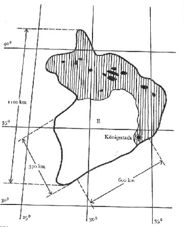 So sah Otto Muck Atlantis. Das schraffierte Gebiet stellt die Gebirgszone dar, die schwarz eingezeichneten Berge sind z.T. die heutigen Azoren.