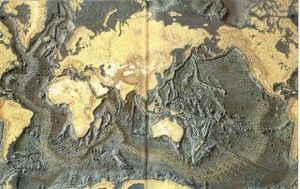 Daß der Erdmantel zerstört und die Erde kurzzeitig bis in große Tiefen aufgerissen wurde, wird zur Gewißheit, wenn man sich die Oberfläche des Meeresbodens im Indischen Ozean anschaut. Über mehr als 8.000 km lassen sich exakt geradlinige, leicht konvergierende "Kratzspuren" am Meeresboden erkennen. Dieses Schleifmuster überdeckt in der Fläche fast 2/3 des gesamten Ozean-Bodens und läßt sich mit den dortigen Meeresspiegelabnormalitäten zur Deckung bringen. Noch weitere Details lassen sich aus Abbildung 1 entnehmen.