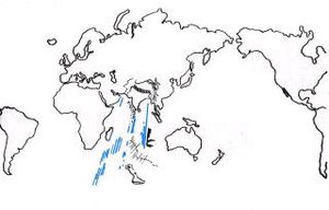 Der Mindestdurchmesser des vermuteten Kollisionspartners betrug danach 4200 km, gemessen zwischen der Ostküste von Madagaskar und der westlichen Abbruchkante des "Broken-Ridge-Plateaus" im Indischen Ozean westlich von Australien (Abb. 1). Auch ein Durchmesser von 5.000 km kann noch mit den erkennbaren Spuren vereinbart worden.