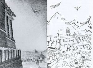 "Jetzt denken die Menschen in Begriffen; der Atlantier dachte in Bildern. Und wenn ein Bild vor seiner Seele auftauchte, dann erinnerte er sich an so und so viele ähnliche Bilder, die er bereits erlebt hatte. Danach richtet er sein Urteil ein. Deshalb war damals auch aller Unterricht anders als in späteren Zeiten. Er war nicht darauf berechnet, das Kind mit Regeln auszurüsten, seinen Verstand zu schärfen. Es wurde ihm vielmehr in anschaulichen Bildern das Leben vorgeführt, so dass es später sich an möglichst viel erinnern konnte, wenn es in diesen oder jenen Verhältnissen handeln sollte. War das Kind erwachsen und kam es ins Leben hinaus, so konnte es sich bei allem, was es tun sollte, erinnern, dass ihm etwas Ähnliches in seiner Lehrzeit vorgeführt worden war. Es fand sich am besten zurecht, wenn der neue Fall irgendeinem schon gesehenen ähnlich war. Unter ganz neuen Verhältnissen war der Atlantier immer wieder aufs Probieren angewiesen, während dem heutigen Menschen in dieser Beziehung vieles erspart ist, weil er mit Regeln ausgerüstet wird. Diese kann er auch in den Fällen leicht anwenden, welche ihm noch nicht begegnet sind."[1]