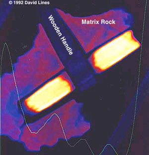Der stählerne Hammerkopf ist etwa 15.24 cm lang und hat einen Durchmesser von 2,54 cm. (Das "Auge" für den Hammerstiel ist oval geformt). Dieses Format erscheint ein wenig klein für ein grobes Schlaggerät, und legt den Schluss nahe, dass das Werkzeug für feinere Arbeiten oder zum Einsatz an weichem Metall bestimmt war. Die ungewöhnliche Homogenität des Kopfes wird im Röntgenbild (Abb. 3) deutlich. Es zeigt, dass das verwendete Metall von großer Reinheit sein muss und keinerlei Bläschen oder Einschlüsse aufweist. "Unsere moderne Industrie ist nicht in der Lage, vergleichbare Eisenprodukte dieser Qualität herstellen. Dies bewiesen auch Testergebnisse, die Blasen und Unregelmäßigkeiten in der Materialdichte aufwiesen." [3] (Abb. 2) zeigt außerdem, dass die Oberflächendichte etwa 10% größer als im Inneren des Hammerkopfes ist. In dieser Darstellung werden die Farben benutzt, um die jeweilige Dichte der jeweiligen Bereiche zu indizieren.