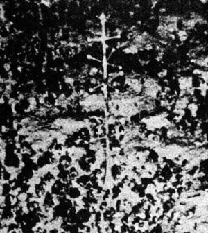 - ↑ Red. Anmerkung: Das erscheint uns durchaus möglich. Wenn der Schwerpunkt des Objekts entsprechend ist und die äußere Form stimmt, dann rammt es sich bei entsprechender Masse ganz 'automatisch' senkrecht in den Boden. Interessant scheint in diesem Zusammenhang ein Phänomen zu sein, das bei Out of Place Artifacts nicht erwähnt wird: Man beachte nämlich die Boden-Struktur um die 'Antenne' herum, die scheinbar mehrfache Wellen-Ringe aufweist, wie unten (Abb. 2) angedeutet. Dies könnte - wir sind keine Experten - in der Tat auf ein technologisches Objekt als 'Impaktor' hinweisen.