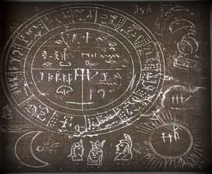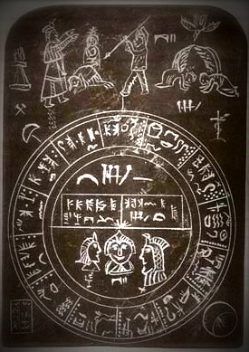Abb. 9 Diese Tafel zeigt eine Sonnenfinsternis, was möglicher Weise valide Rückschlüsse auf die Zeit ihrer Entstehung ermöglicht. Foto aus: David Deal, "Michigan Solar Exlipse Tablet and Mound Builder City", in: H. Mertz, 'The Mystical Symbol', S. 194 (nach: The Ancient American)
