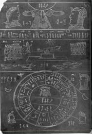Abb. 7 Michigan-Tafel mit alttestamentarischer Schöpfungsgeschichte; aus: Henriette Mertz, 'The Mystic Symbol', S. 143 (Foto nach: The Ancient American)