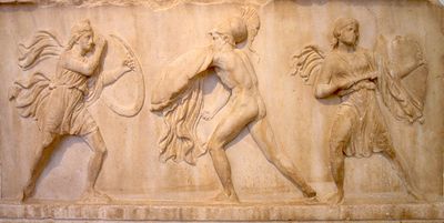 Als Amazonen bezeichneten die Griechen kämpferische Frauen, mit denen sie bei ihrer Ausbreitung nach Kleinasien (Türkei) in Kontakt gekommen waren. Im Trojanischen Krieg fand die Amazonenprinzessin Penthesilea den Tod. Die Frauen züchteten Pferde, die sie als heilige Tiere verehrten, sie galten als fulminante Reiterinnen. Man nannte sie auch die „Töchter des weißen Pferdes“, nach der Mondgöttin. Ihre Hauptwaffe bestand aus Pfeil und Bogen. Das Frauenvolk siedelte hauptsächlich im nordöstlichen Teil des Kaukasus am Kaspischen Meer, in Keraunien, bis hin zur östlichen Schwarzmeerküste und außerdem an der Südküste des Schwarzen Meeres. (Anmerkung: >Keraunien< hat wohl namentlich (vor-)keltische Sprachwurzeln. Die Konsonanten -k, g, c und h- sind gleichwertige Glieder derselben Lautstammreihe. Ger, Ker, Her- (Manen) verbergen das gleiche Geheimnis im Namen.)