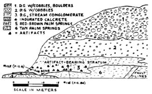 - ↑ Quelle: Childers, W. Morlin und Minshall, Herbert L.; "Evidence of Early Man Exposed at Yuha Pinto Wash," American Antiquity, 45:297, 1980.