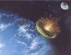 - ↑ Siehe: L. & W. Alvarez (et al.): "Extraterrestrial Cause for the Cretaceous-Tertiary Extinction", in: SCIENCE, 208, 1980.