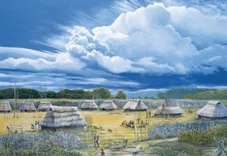 ...Etwa zu dieser Zeit lebte das Volk der Eagwehoewe am Fluss Kanawaga oder St. Lawrence (Abb. 1); doch es konnte die Beschaulichkeit dort nicht genießen, denn es wurde von den, Ronnongwetowanea genannten, Riesen überfallen, die von Norden her kamen [1] und beträchtlich [viel Land] bewohnten; doch ihre Art anzugreifen war töricht, und sie wagten es niemals gegen den Gegner vorzugehen, wenn sie sich ihres Erfolgs nicht sicher waren; vorzugsweise ergriffen sie die Gelegenheit, wenn die Krieger nicht in der Siedlung waren. Nachdem sie die Häuser der Leute geplündert, und jene gefangen genommen hatten, die sie fanden, zogen sie sich hastig in ihr Domizil im Norden zurück.