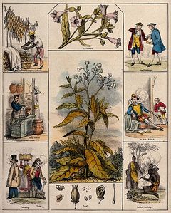 - ↑ J.E. Brooks, "Tobacco: Its History Illustrated by the Books, Manuscripts and Engravings in the Library of George Arents, Jr.: together with an Introductory Essay, a Glossary and Bibliographic Notes" Vol. 5, New York (Rosenbach Co.), 1952, S. 43