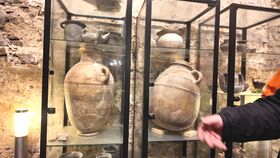 In the first rooms, evidence of Roman underfloor heating (hypocaust) was found. The system was technically very sophisticated—essentially the underfloor heating of antiquity. This image shows a pictorial reconstruction of the system. However, the underground systems are not visible at the current stage of the reconstruction, although Plexiglas panels provide some glimpses into the substructure. However, it is very dark there, and little can be seen.Um diesen antiken Befund zu bestätigen, haben die Ausgräber auch eine Vielzahl römischer Artefakte ausgestellt. Diese reichen von Vasen über römische Gläser bis hin zu Waren des täglichen Gebrauchs. Diese Ansammlung ist sehr beeindruckend und untermauert, dass diese Überreste sehr bedeutsam sein könnten. //
