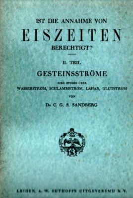- ↑ Siehe: C. G. S. Sandberg: ,,Ist die Annahme von Eiszeiten berechtigt? - Teil II: Gesteinsströme, eine Studie über Wasserstrom, Schlammstrom, Lahar, Glutstrom”, Leiden 1940.