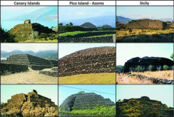 Diese Fragen sind in der Tat berechtigt. Wir können sie heute zufriedenstellend beantworten. Zuvor möchte ich aber einige Einleitende Erklärungen abgeben. Abgesehen von den Pyramiden in der Bretagne und in Falicon [2] bei Nizza, die aber auch an der Küste stehen, dokumentiert ihr Vorkommen auf Inseln, dass die Pyramidenarchitektur nur durch frühgeschichtliche Seefahrer dorthin gebracht worden sein kann. Jedoch besitzen Seefahrer im Allgemeinen nicht die Kenntnisse und Erfahrungen im Bau großer Heiligtümer. Deshalb können wir von größeren Kolonisationen oder Entdeckungsfahrten ausgehen, auf die sich ausgewählte Volksgruppen für die Fortsetzung ihrer Kultur begaben.
