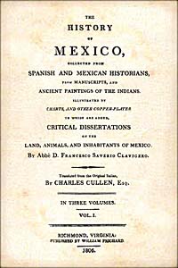 (2) Francesco S. Clavigero, History of Mexico, Vol. I, Richmond: Wm. Prichard, 1806, online bei: Oliver's Bookshelf