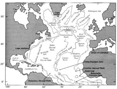 Des weiteren ist das Phänomen, das als "Kontinental-Drift" bekannt ist, und durch die Aktion der Platten-Tektonik verursacht wird, ein extrem langsamer Prozess. Der Auslöser, der Nord- und Südamerika und Euro-Afrika auseinander driften ließ, ereignete sich zu Beginn der mesozoischen Ära, vor etwa 200 Millionen Jahren. Im Nordatlantischen Ozean hat es während der jüngsten 60 Millionen Jahre ausreichend Platz für Atlantis gegeben - und es gibt definitive ozeanographische Daten, welche dies stützen (Ewing, 1948)