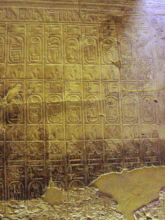 Ungewöhnliche Hieroglyphen (Abb. 3), die den zuständigen Sprachforschern Mühsal bereiten, befinden sih im Sethos-Tempel von Abydos. Die Gravuren zeigen Gegenstände, die ob ihrer Gleichklänge mit modernen technischen Errungenschaften verblüffen. Die merkwürdigsten Darstellungen zieren den Deckenbalken über einem Türfries, das sich im Gang der "Allee des Amun-Re" befindet und einen Zugang zum "1. Säulensaal" des Tempels ermöglicht. Das Relief enthält Abbildungen und verleitet unvoreingenommene, fantasiebegabte Betrachter dazu, Vergleiche anzustellen: "Sieht aus wie..."