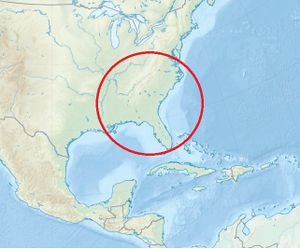 Angesichts von Henriette Mertz Annahmen zu präkolumbischen, transatlantischen Kontakten zwischen Menschen aus Europa und Amerika, kann es kaum erstaunen, dass sie auch Platons Atlantis in der gar nicht so 'Neuen Welt' verortete. Allerdings gehört sie zu den vergleichsweise wenigen ForscherInnen, die es nicht in Süd- oder Mittelamerika lokalisiert haben, sondern explizit im Norden des Doppelkontinents - im vorliegenden Fall konkret: im Südosten der heutigen USA. (Abb. 8)