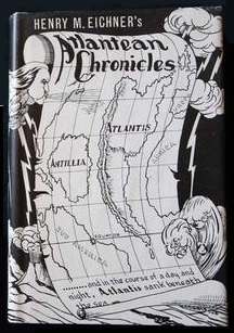 Beide Leidenschaften - Forschung und Fiktion in Sachen Atlantis - vereinte Henry M. Eichner mit der Publikation seines, 1970 verfassten und in seinem Todesjahr erschienenen, Buches "Atlantean Chronicles" [2], dessen Front-Cover (Abb. 1) er zudem selber gestaltete. Über dieses rare, in einer Auflage von nur 1250 Exemplaren erschienene, Werk schreibt Tony O’Connell online in seiner Atlantipedia: "Sein Buch über Atlantis behandelt alle wesentlichen Theorien der vergangenen vier Dekaden, und Eichner selber optiert für eine Lokalisierung von Platos Atlantis im Atlantik. Ausführlich diskutiert er die Minoer-Theorie und als [eine Art] Abschlusskommentar stellt er die Frage, warum Plato Atlantis nicht einfach Kreta genannt habe, wenn dies [tatsächlich] der Ort gewesen sei, wo es sich befand.